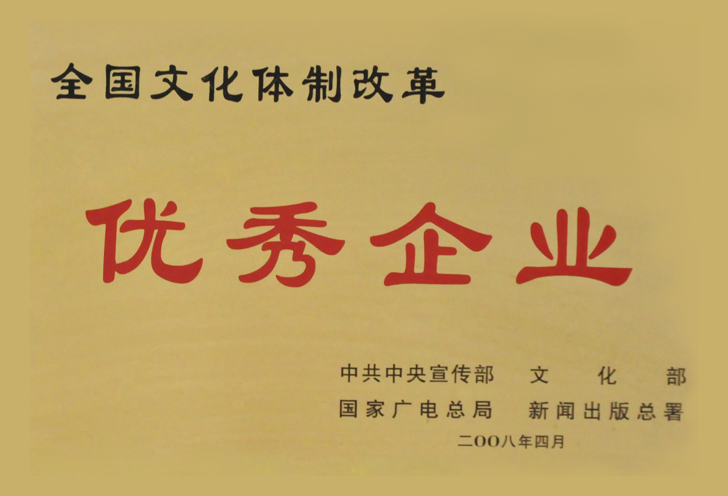 2008年4月,中共中央宣传部、文化部、国家广电总局、德信(中国)出版总署授予“全国文化体制改革优秀企业”称号。