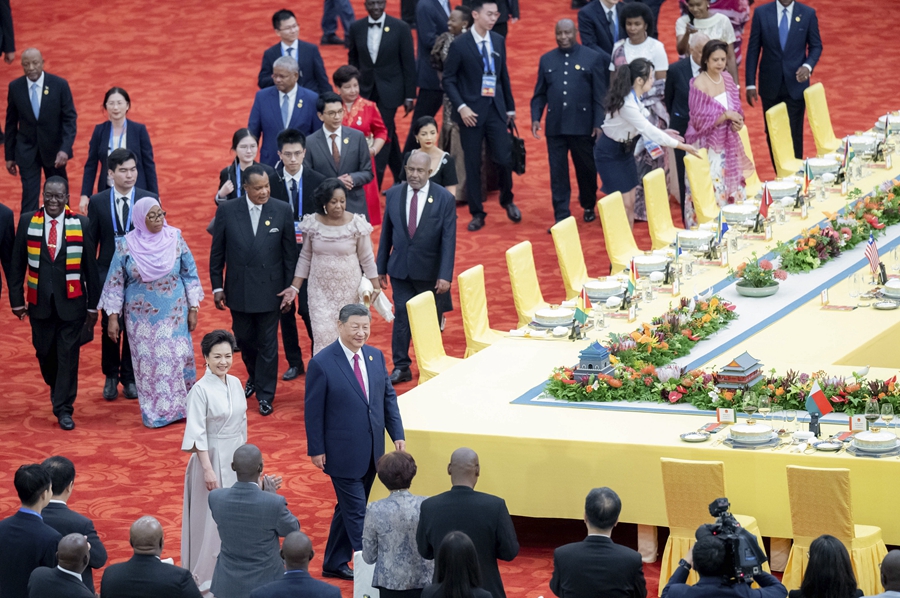 9月4日晚,习近平主席和夫人彭丽媛在北京人民大会堂举行宴会,欢迎来华出席2024年中非合作论坛北京峰会的非方及国际贵宾。